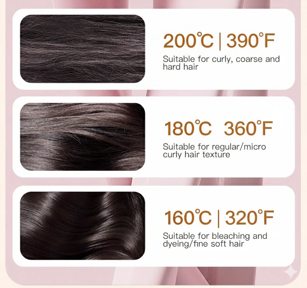 - Thick or curly hair? 200 °C (390°F) gives salon-like straightening at home.